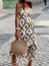 De Equinox jurk heeft een fascinerende ikatprint die een vleugje bohemian charme en een levendige look toevoegt.