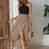 Verrijk je zomergarderobe met deze Savannah - high-low jurk met gekruiste halternek, voorzien van een chique patchwork luipaardprint. Het verleidelijke off-the-shoulder ontwerp en de halternek vormen samen een opvallend silhouet, terwijl de ongelijke split een gedurfde touch aan het kledingstuk geeft. Het is de perfecte mix van wilde charme en elegante stijl voor de moderne vrouw.